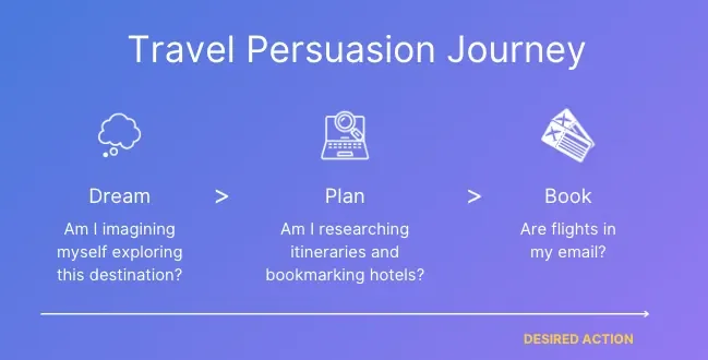 By testing content at each step, you can see exactly where the chain breaks. Maybe people are inspired to dream, but not planning. Maybe they’re planning, but never pulling the trigger. That’s where you put the work.